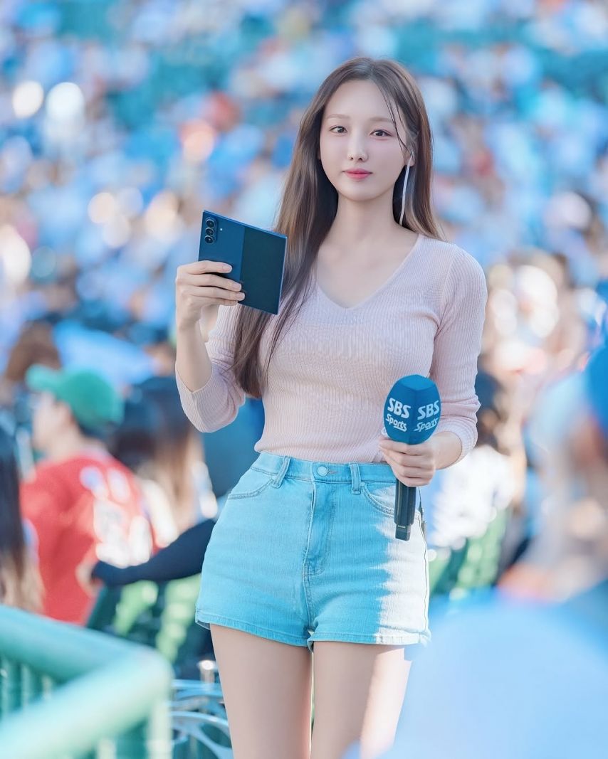 장예원 자연 속 산뜻한 스트라이프 셔츠룩으로 시선 집중