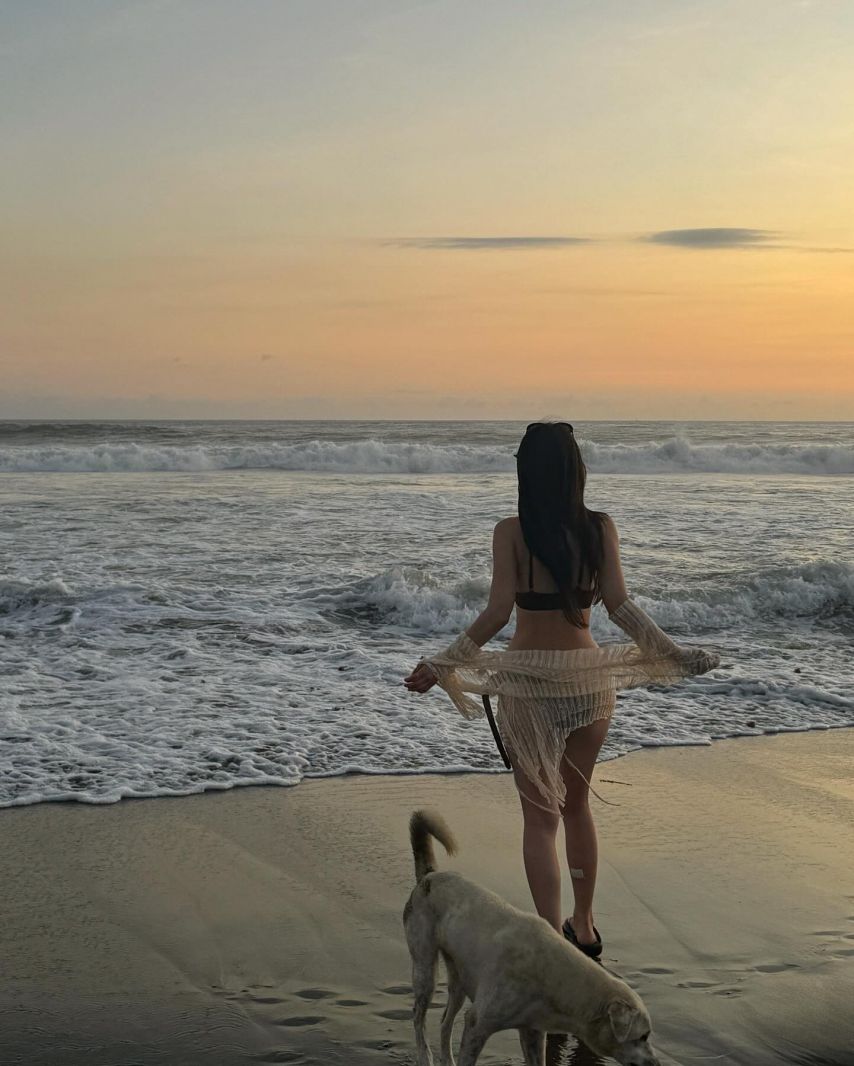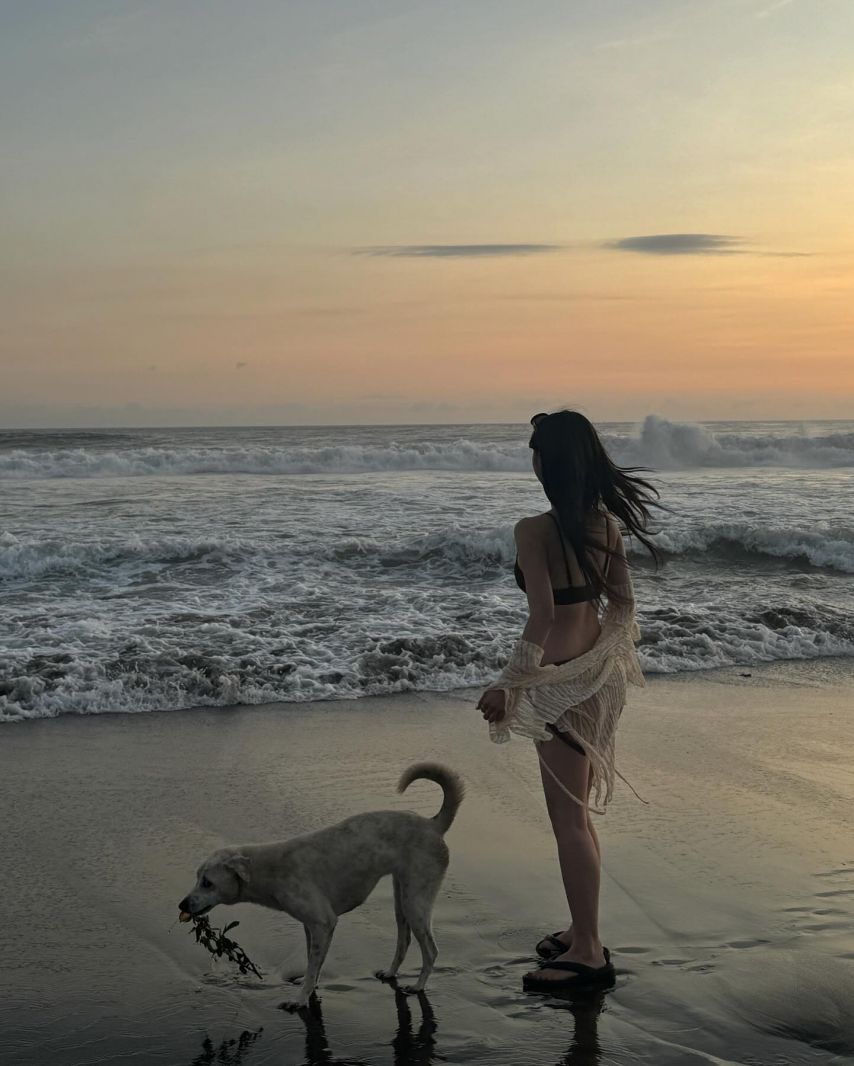 장예원 자연 속 산뜻한 스트라이프 셔츠룩으로 시선 집중