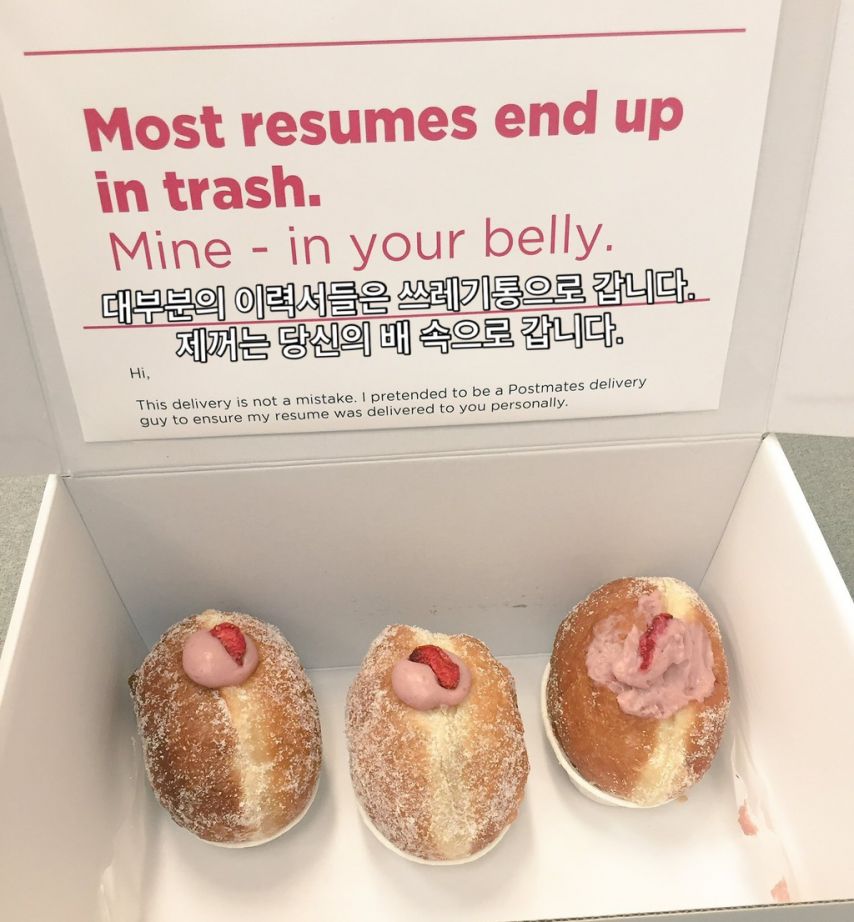출처:*여성시대* 차분한 20대들의 알흠다운 공간 | 도넛 상자 안에 이력서를 넣은 남자 – Daum 카페