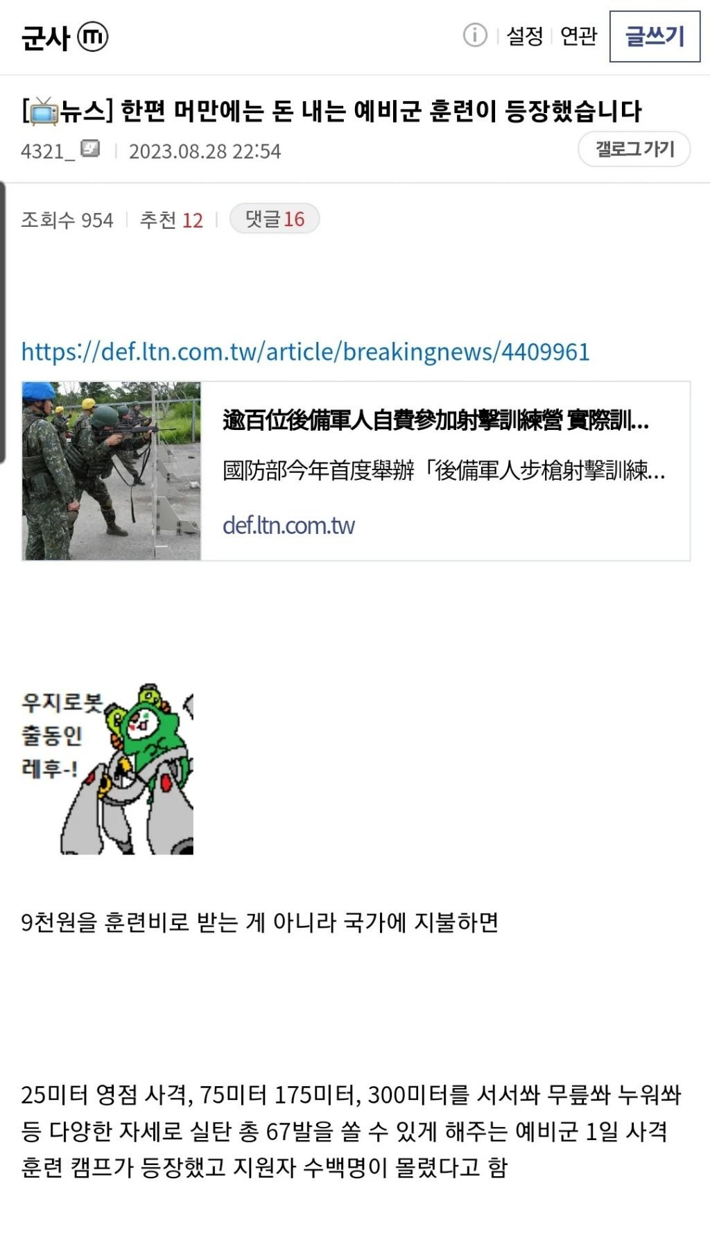 돈내고 하는 예비군 훈련 ㄷㄷㄷㄷㄷㄷ