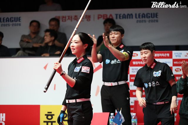 [빌리어즈=성지안 기자] 1라운드 최하위 휴온스가 ‘당구 여신’ 차유람(휴온스)의 부활과 동시에 2라운드 선두를 탈환하며 반전을 시작했다.