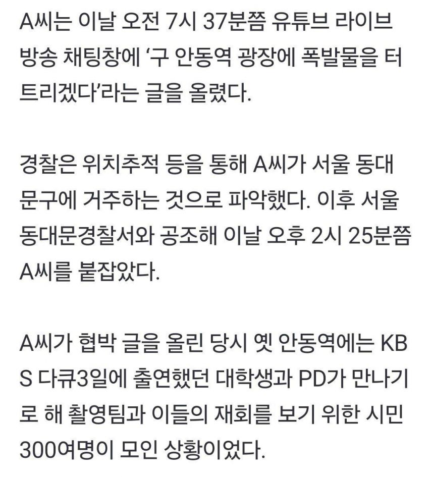 속보] 안동역 폭파 협박범, 서울에서 검거
