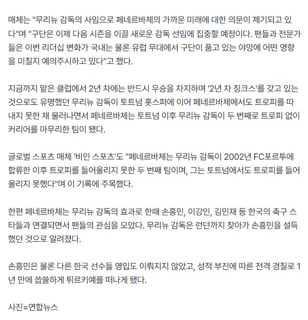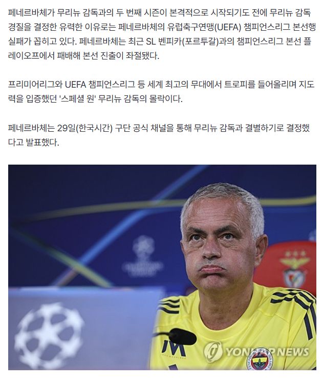 손흥민·이강인·김민재 싹쓸이 한다더니 끝내…’스페셜 원’ 충격 몰락, 무리뉴 페네르바체서 전격 경질 [오피셜]