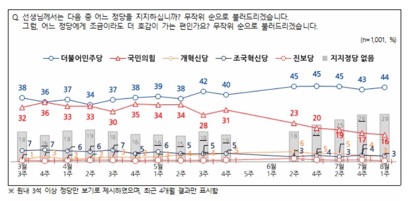 보수 지지율 1%도 못받아 쳐먹고 오히려 6%->3%로 같이 지지율 반토막 남