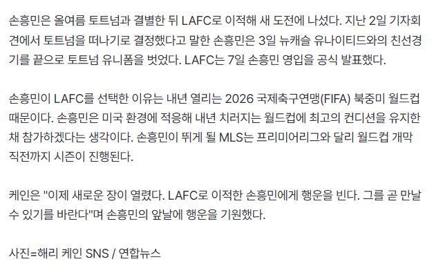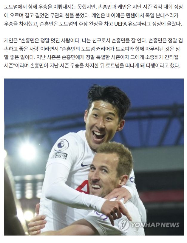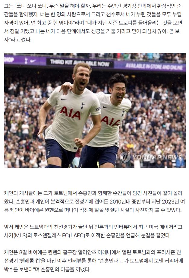 “쏘니, 우린 환상적이었어! 넌 최고였다” 케인 진짜 감동이다…케인, SNS 손흥민 헌정 게시글 띄웠다