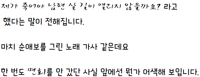 “제가 죽어야 남편에게 살길이 열리지 않을까요”