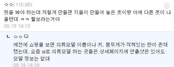 근데 요즘 쇼핑몰 탭에서 확실히 모델 정보 적혀있는 경우를 본 횟수가 손에 꼽을 정도로 줄어든 것 같음