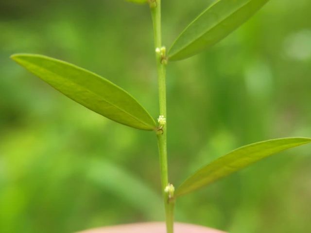 애기땅빈대하고 비슷한데 크기가 좀 크고 비스듬히 직립하며(애기땅빈대는 포복성) 잎에 점이 없음