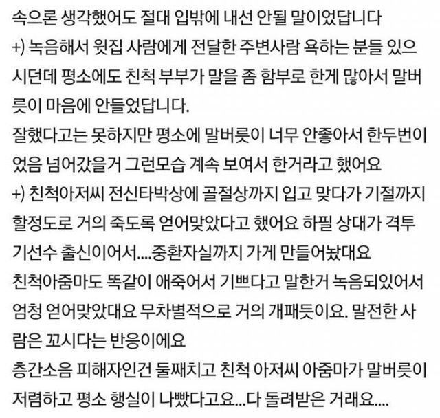 판) 윗집 애 죽었는데 기뻐했다고 전치10주 폭행당함