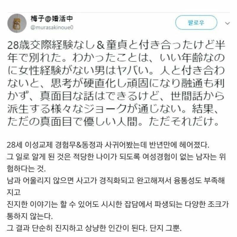 28살 모솔아다랑 사귀어본 일본녀의 후기